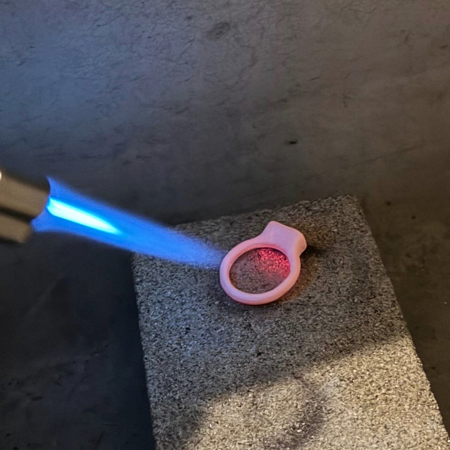 Na het verhitten polijst ik de ring zorgvuldig op. Zo ontstaat een zachte glans en comfortabele afwerking.