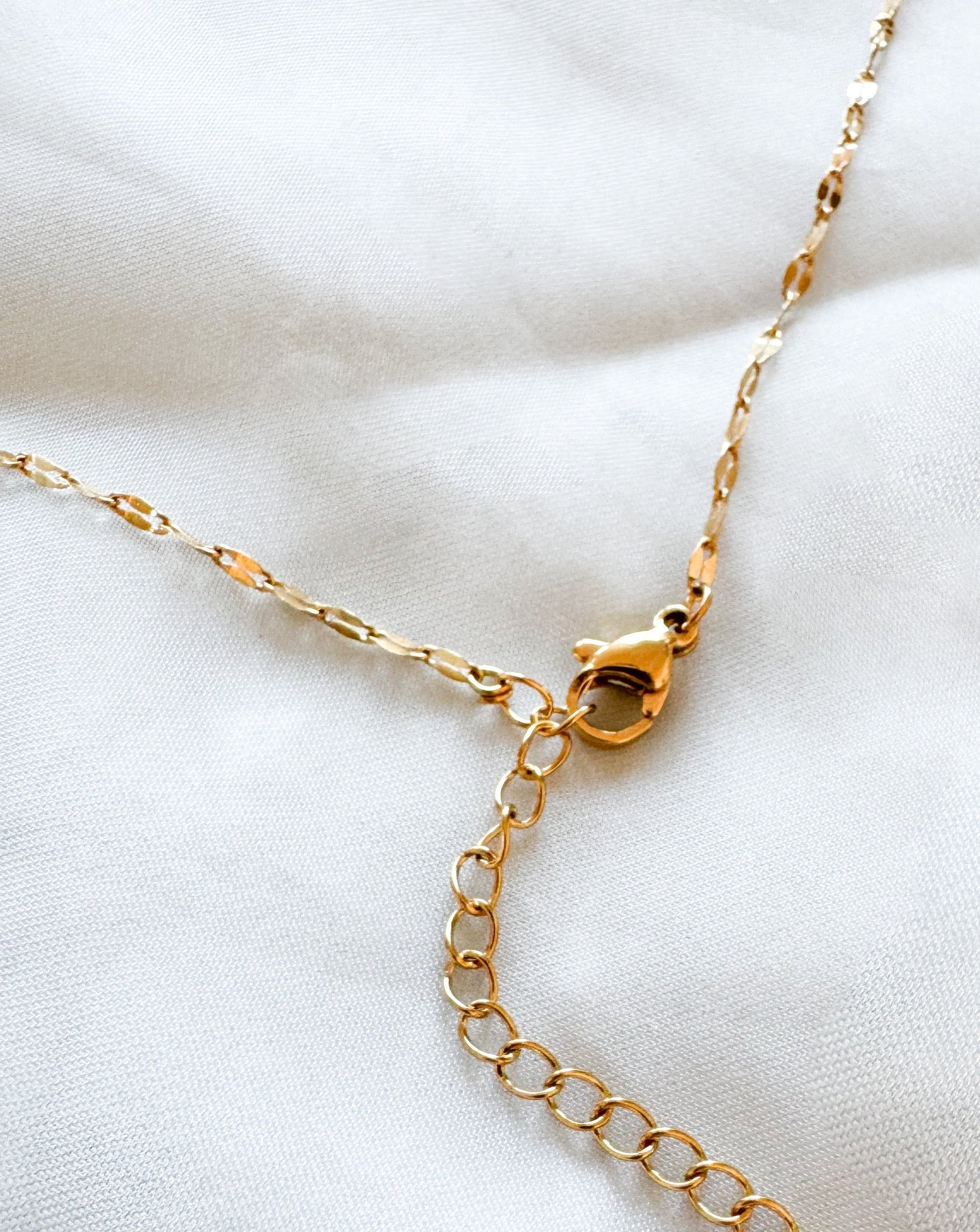 Deze ketting is waterproof. Wel raad ik aan om deze niet standaard te dragen tijdens het douchen of zwemmen, aangezien je ketting hier natuurlijk ook in contact komt met zeep en chloor.