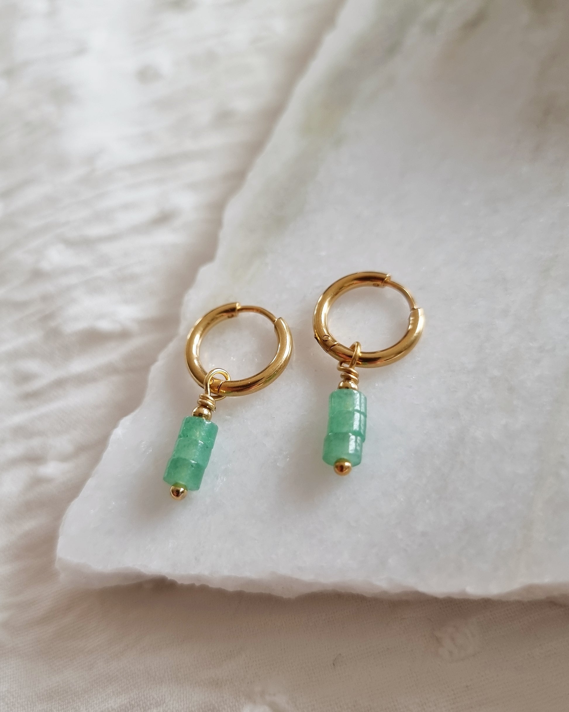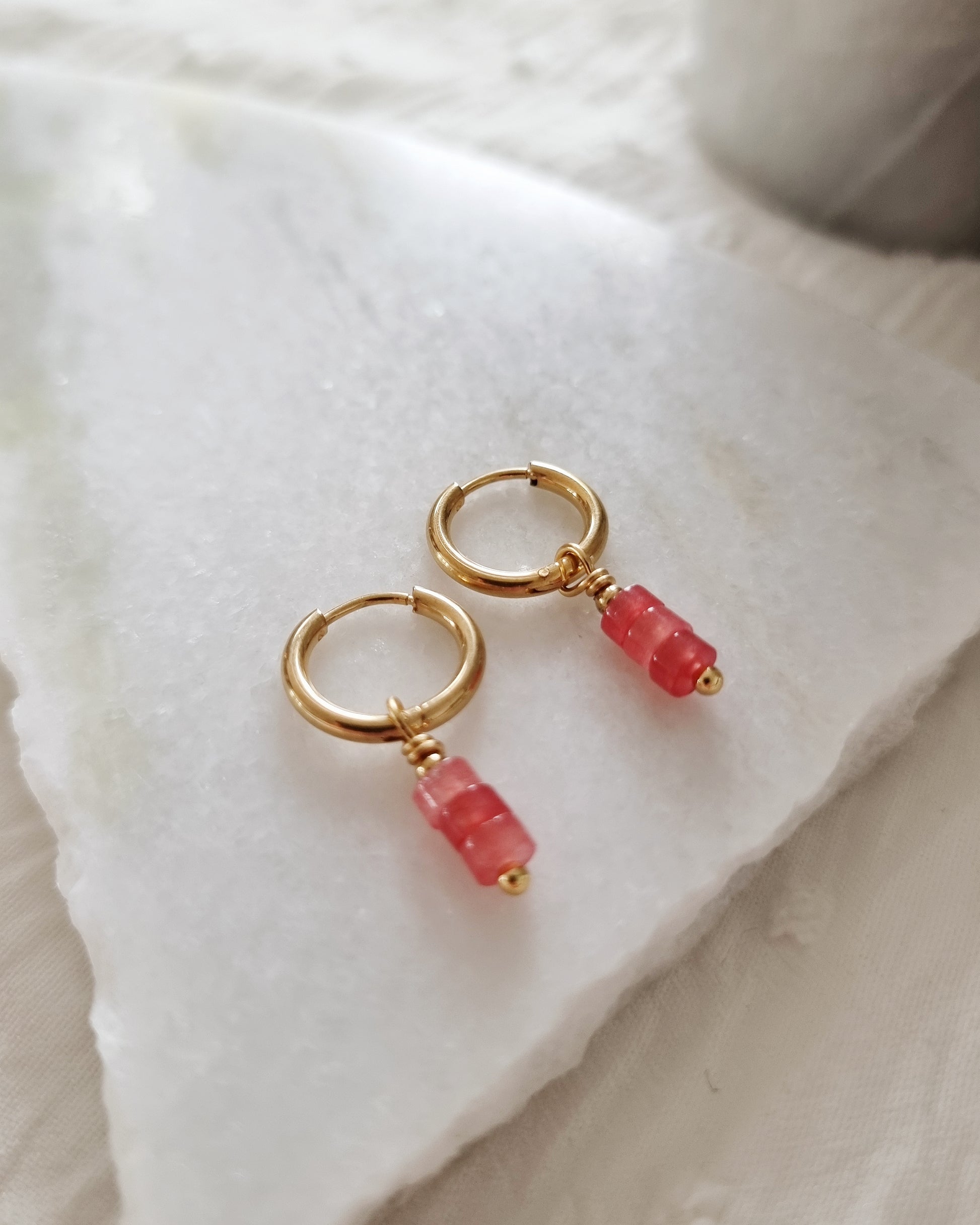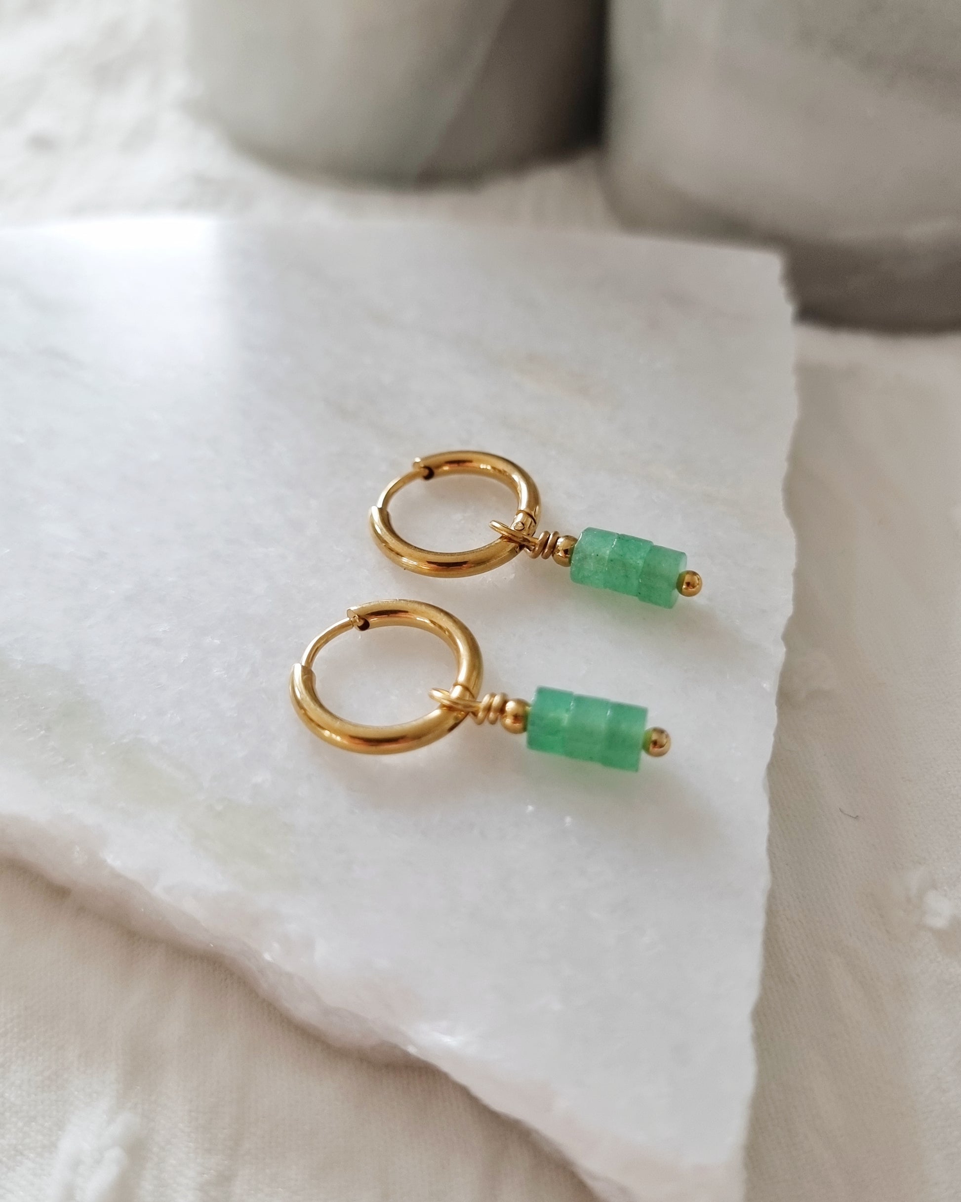 Dina | Gouden oorbellen met edelsteen hangers | Stainless steel