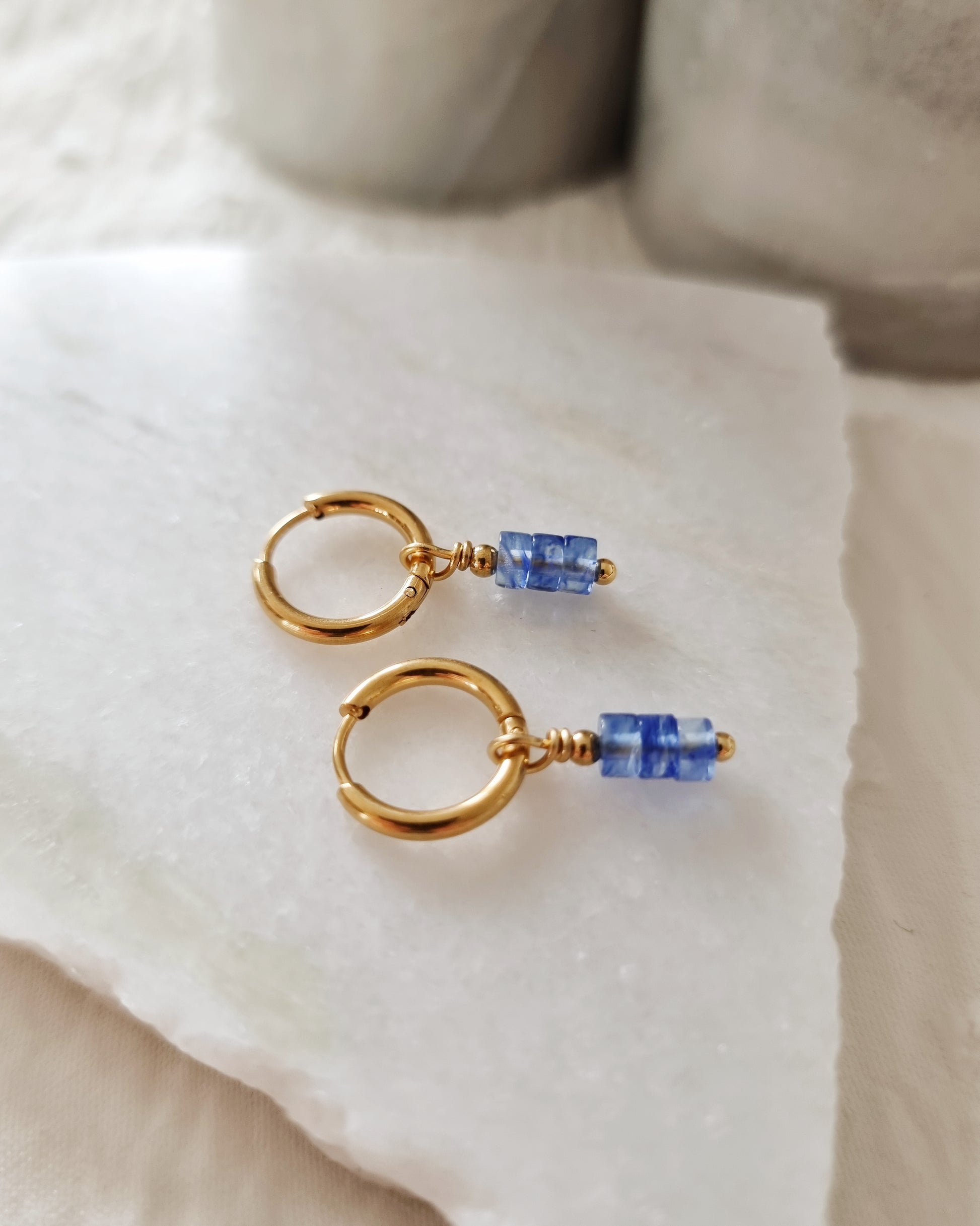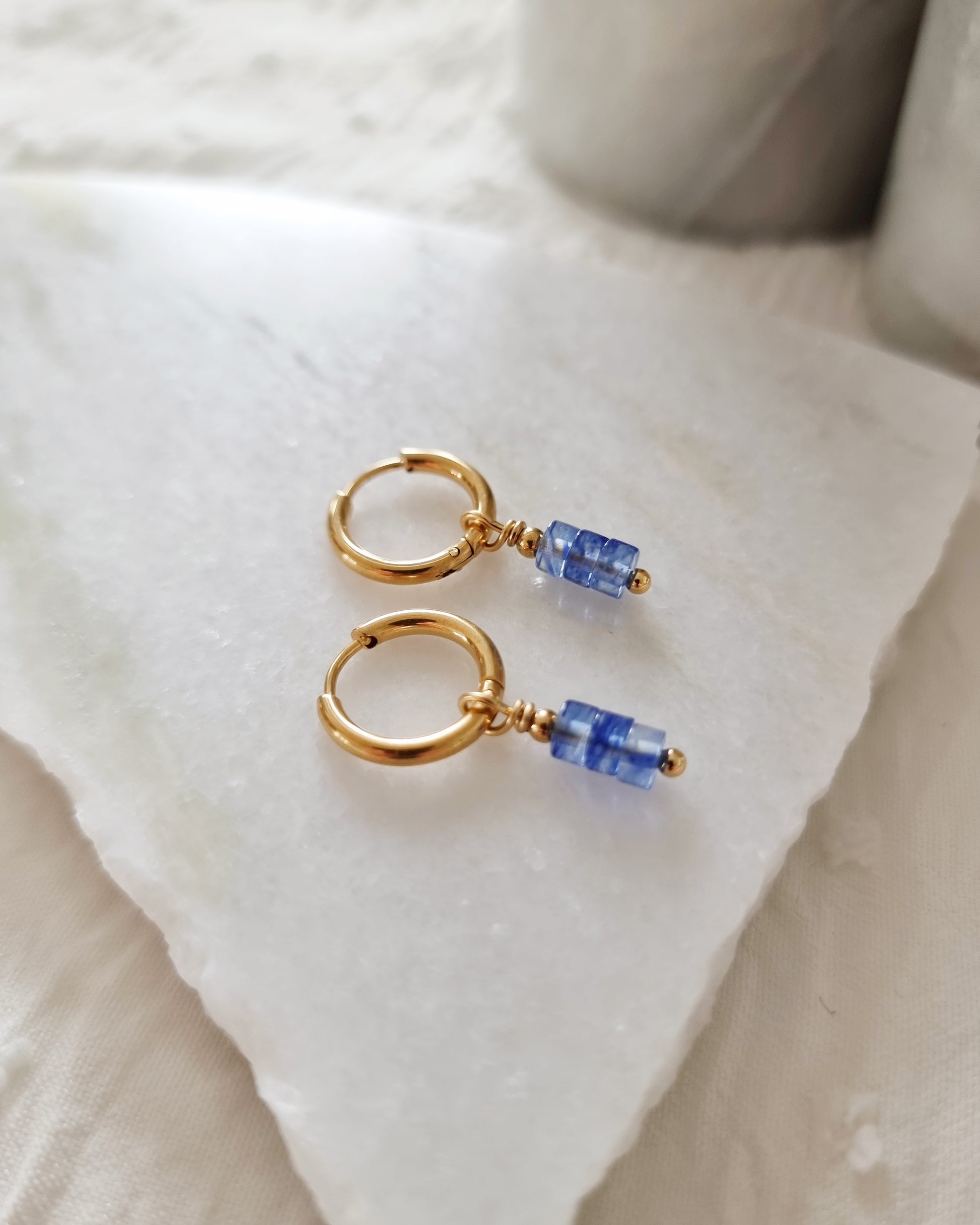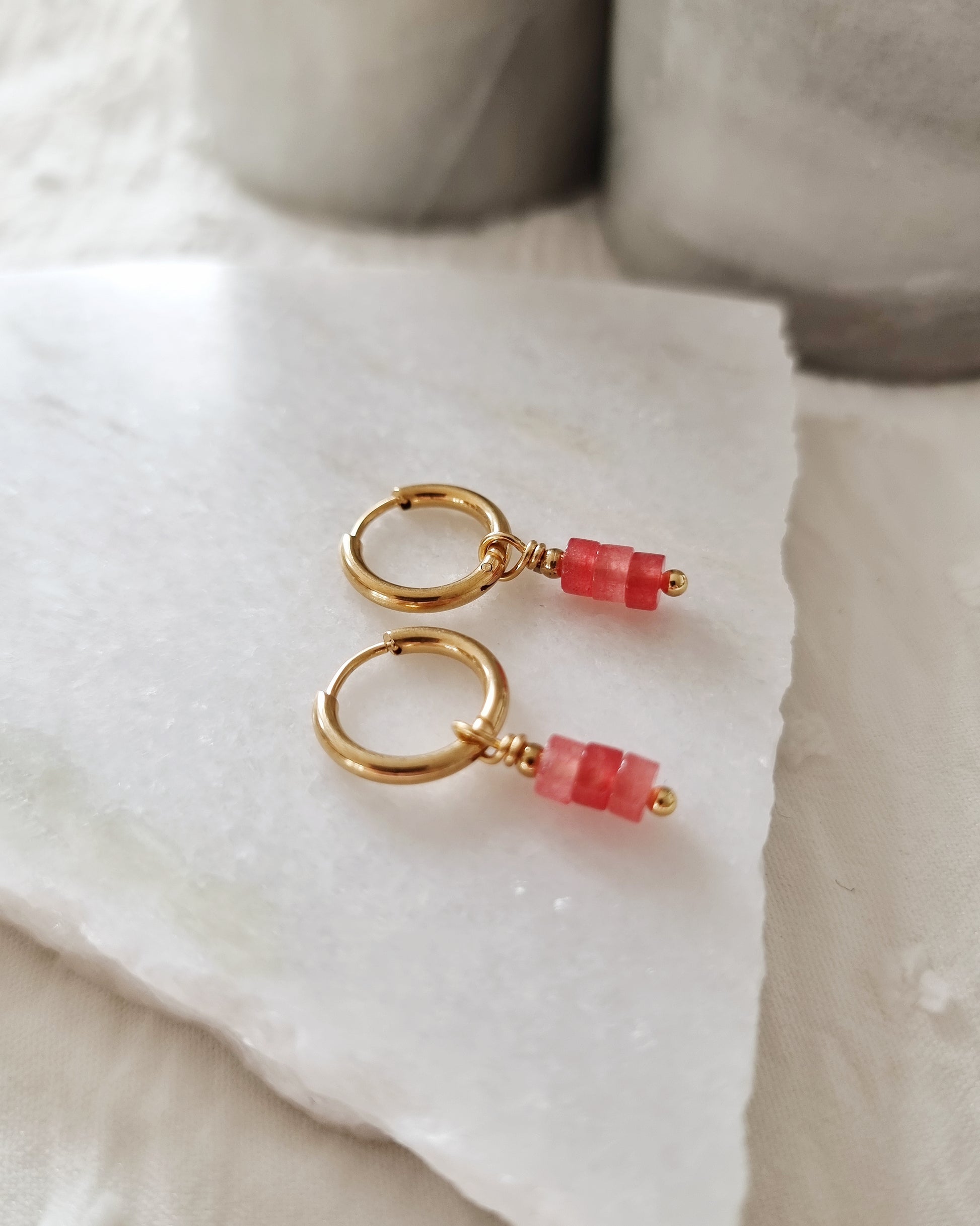 Dina | Gouden oorbellen met edelsteen hangers | Stainless steel