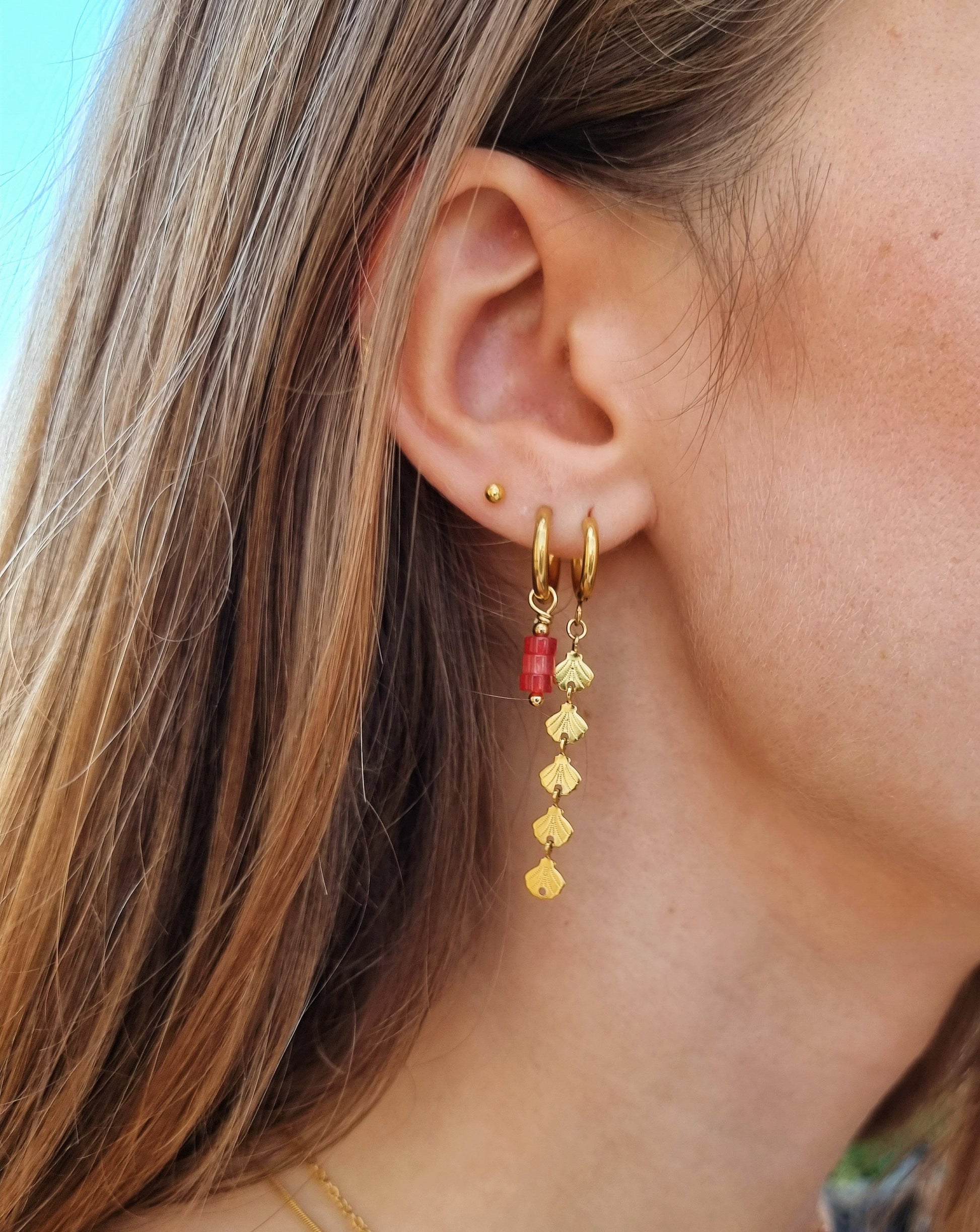 Match made in heaven: combineer de Dina oorbellen met de lange, gouden Mermaid oorbellen.