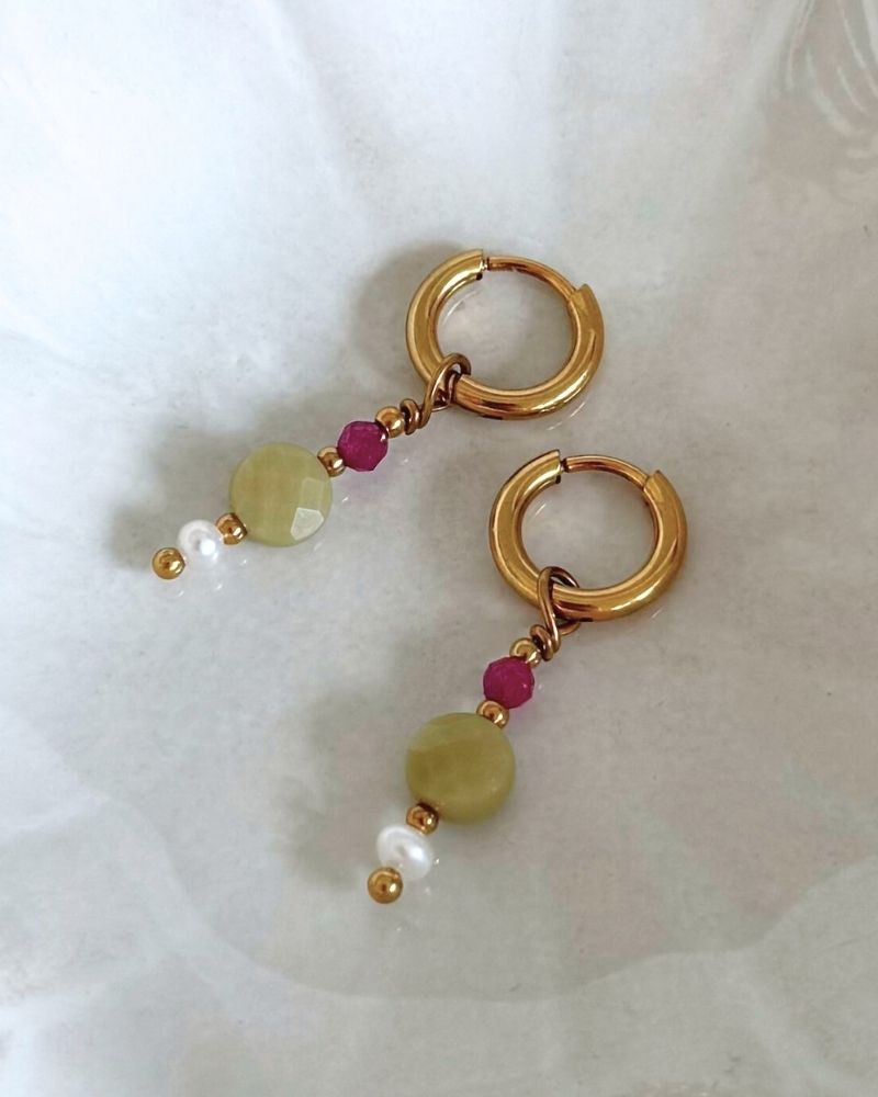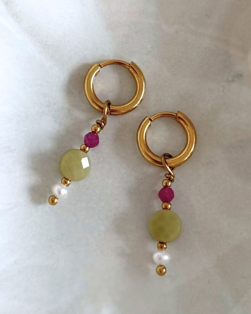 Eden | Kleurrijke oorbellen met parels en edelstenen | Stainless steel
