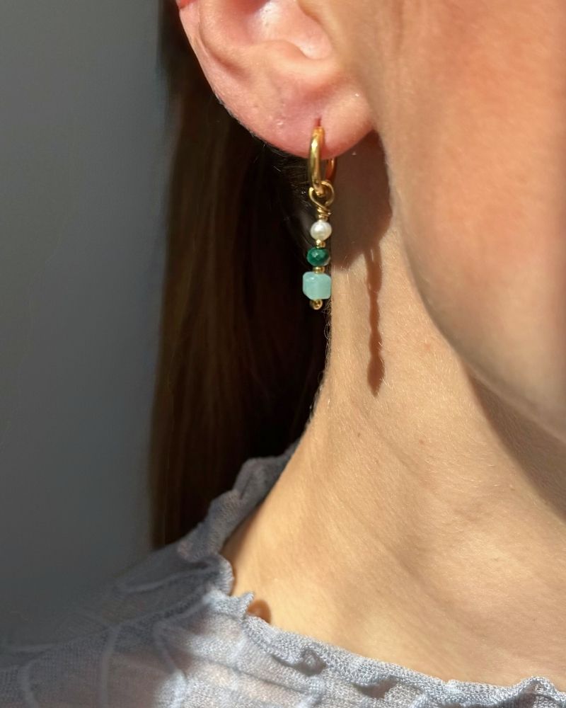 Fenna | Oorbellen met parels, Malachiet & Amazoniet | Stainless steel