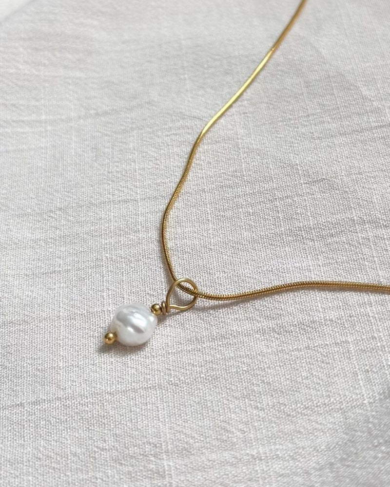 Deze gouden parel hanger is gemaakt van goud stainless steel en een echte keshi parel. Het gaat hier om een losse hanger (exclusief ketting). De foto's met ketting zijn ter illustratie. De keshi parel hanger mét ketting shop je hier.