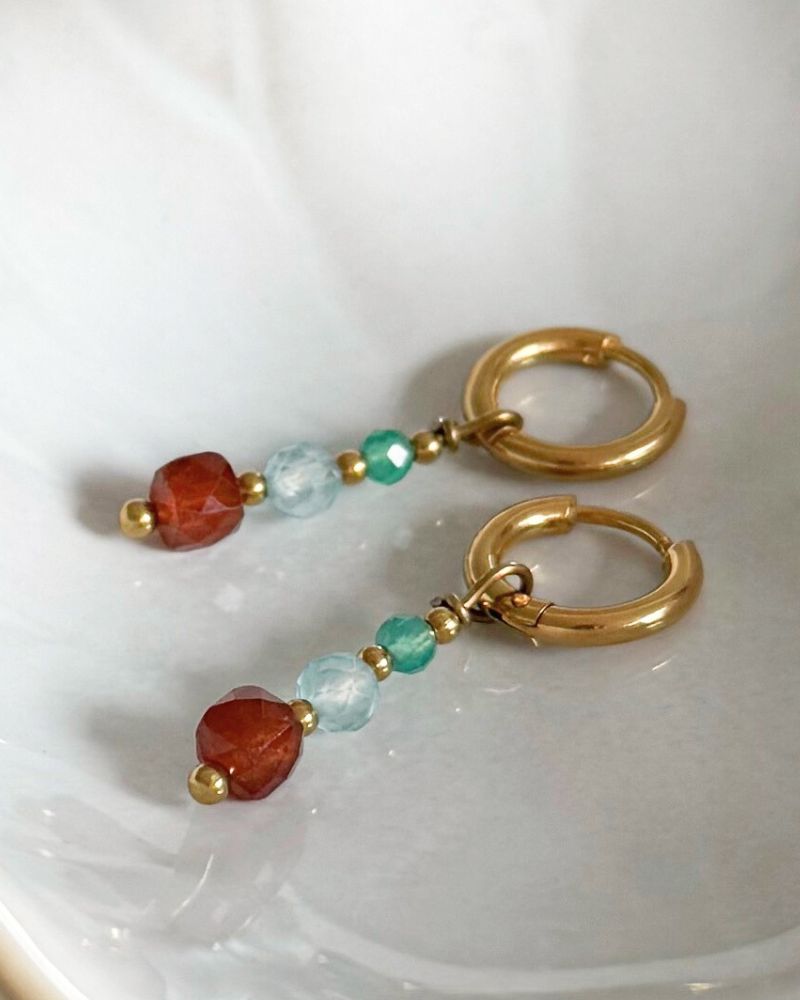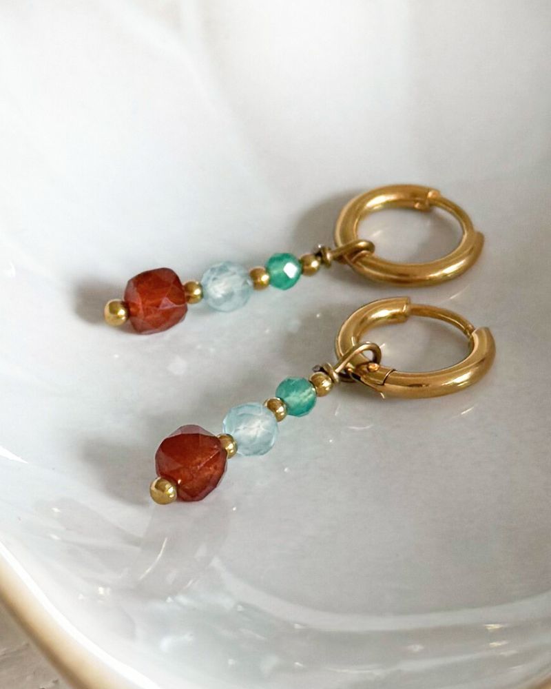 Siena | Stainless edelsteen oorbellen | Granaatsteen, Topaas & Agaat